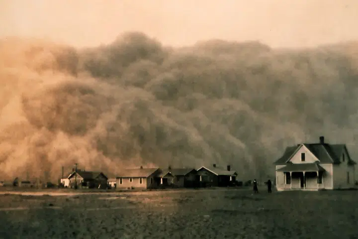 O filme começa com uma sociedade em declínio, na qual tempestades de poeira assolam o cotidiano das pessoas. Por mais impressionante que possa parecer, isso foi inspirado em um evento histórico que aconteceu de verdade nos EUA, durante a década de 1930, paralelamente à Grande Depressão. Chamada de “Dust Bowl”, essa catástrofe natural foi considerada a mais longeva da história americana. Com a alta procura por trigo, os fazendeiros transformaram as planícies em grandes pastos. Porém, com a vinda da seca e a terra revirada, a camada superficial do solo acabou se soltando e virando poeira. Os ventos carregavam essa poeira, destruindo pastagens e matando o gado. O mais assustador é que isso só foi terminar lá para os anos 40, deixando um rastro de destruição e epidemias de problemas respiratórios, como pneumonia e Febre do Vale, que era causada por um fungo que vinha do solo revirado.