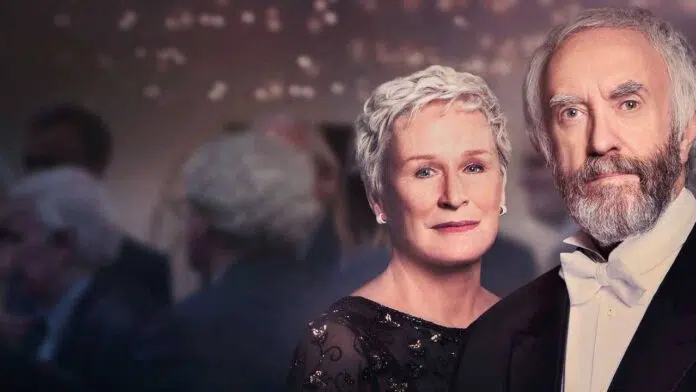 O escritor norte-americano Joe Castleman (Jonathan Pryce) acaba de receber o anúncio de que levou para casa o aclamado Prêmio Nobel, por seu incrível trabalho na indústria literária. Ele então viaja com sua esposa, Joan (Glenn Close) para Estocolmo, onde a premiação tomará lugar – e é justamente com essa incrível notícia que o diretor abre espaço para explorar o que bem entender e como bem entender cada uma das inúmeras camadas de sua obra. Logo no breve prólogo, em que Close e Pryce já demonstram uma química impecável mesmo olhando um para o outro sem trocarem sequer uma palavra, Joan nos mostra claramente o asco que sente pela indicação do marido – uma atitude um tanto quanto controversa, a priori. Porém, conforme o filme se desenrola, percebemos que há muitas coisas escondidas por trás da perfeita máscara que o casal usa.