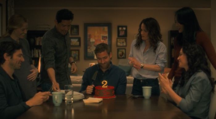 Na cena final em que a família está celebrando a sobriedade de Luke, Flanagan pensou em manter a janela vertical e sugerir que a família nunca havia realmente escapado da casa.