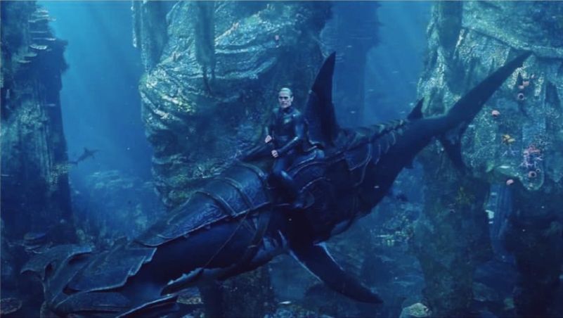 ‘Aquaman‘ ganhou uma nova imagem, que traz o Vulko (Willem Dafoe) montado em um tubarão.