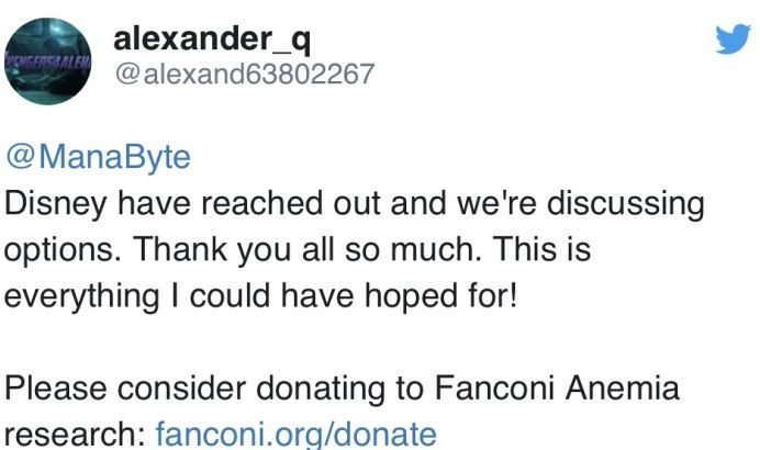 “A Disney entrou em contato e estamos discutindo as opções. Muito obrigado. Isso é tudo que poderia sonhar”, afirmou.