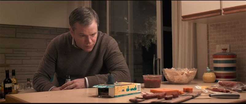 Partindo de uma ideia genial, o roteiro escrito por Alexander Payne e Jim Taylor aborda diversos tabus diferentes da sociedade e se arrasta ao longo de intermináveis 135 min.