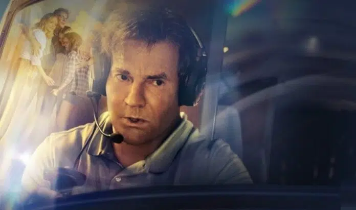 Inspirado em uma história real, ‘Fé nas Alturas’ tem uma boa ideia (que provavelmente é a parte real da produção) – um cara que, sem experiência, precisa pousar um avião porque sua família está em perigo – porém, o que vemos no roteiro de Brian Egeston é que, tirando esta parte, todo o resto da produção é uma construção bastante ingênua para preencher a história de modo que ela tenha tempo de exibição suficiente para se tornar um longa-metragem. Das 1:40 de filme, leva-se 34 minutos até que Doug e sua família finalmente embarquem no avião que dá o mote da história; antes disso o espectador passeia entre um concurso de churrasco e vai conhecendo outros 3 núcleos de personagens aleatórios (um controlador de voo com problemas de bebida, uma criança obcecada com o mundo da aviação e um outro homem que tem algum conhecimento de avião mas que anda desgostoso da vida); até esses mundos convergirem, já se passaram quase 1 hora de filme, o que demonstra que o filme em si tinha pouca história.