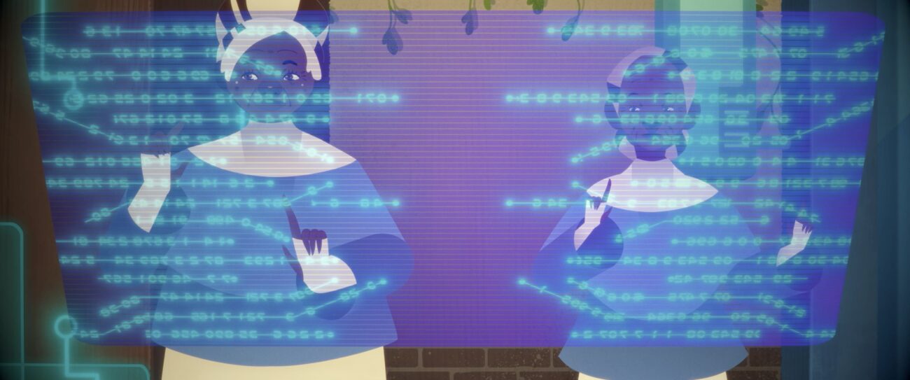 Para recriar toda essa ideia, a materialização parece ser feita, em partes, através da ilusão do movimento em fotografias quadro a quadro (stop-motion) combinada a técnicas em 2D (desenhos sequenciais). Essa junção imprime um ritmo bastante corrido, fazendo com que algumas pontas fiquem soltas – algo que não influencia o entendimento – por isso a atenção do público é necessária. Festas realizadas por meio de lives, andróides que assumem formas humanas, elementos vão sendo inseridos para compor um cenário extenso de um metaverso e também toda a denúncia quando esse universo se revela nocivo.