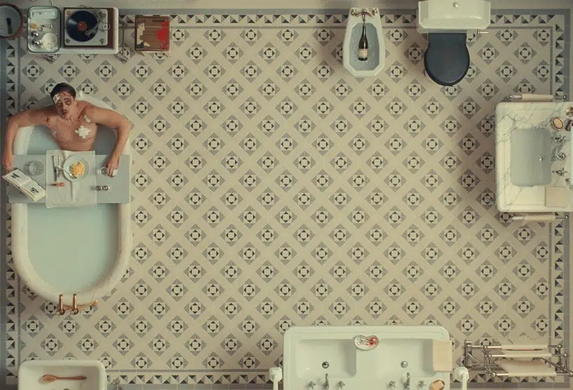 Vale contar que esta é a primeira vez que Wes Anderson trabalha com um novo fotógrafo – dessa vez, quem assina o projeto é Bruno Delbonnel (de ‘O Fabuloso Destino de Amélie Poulain’), e tal mudança provoca duas sensações em quem acompanha o diretor: a primeira é que, se você não tem essa informação primeva, você nem sente a mudança, pois a assinatura de Anderson está em absolutamente todas as cenas. A segunda é que Bruno Delbonnel faz um trabalho fabuloso com sua câmera, não só propondo ângulos inusitados, mas, principalmente, abraçando toda a cenografia do longa (com direção de Anna Pinnock). Todas as locações são transformadas em ambientes de tirar o fôlego, que crescem na telona em múltiplas camadas de cores. Uma cena específica, a dos créditos iniciais, em que Zsa-Zsa toma banho de banheira enquanto é atendido por enfermeiras, é simplesmente arte pura. Um deslumbre só!