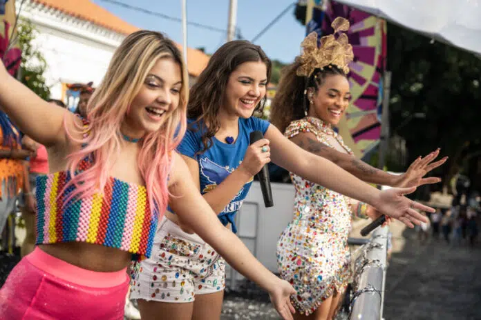 O roteiro da dupla de sucesso Sylvio Gonçalves e Bruno Garotti (‘Diários de Intercâmbio’) com Maíra Oliveira e colaboração da própria Thalita foca não só em construir um romance juvenil, mas, acima de tudo, em costurar os percalços do amadurecimento da protagonista em busca de seu objetivo. Para quem gosta de caçar easter eggs, dá para identificar inspirações da animação ‘Rio’, quando a protagonista chega na cidade de carro, e também do filme anterior de Thalita, ‘Pai em Dobro’, também sobre uma personagem do interior que vem ao Rio viver o Carnaval. Aliás a própria Thalita aparece no filme, como um destaque do desfile, bem como também seu marido, como profissional da imprensa.