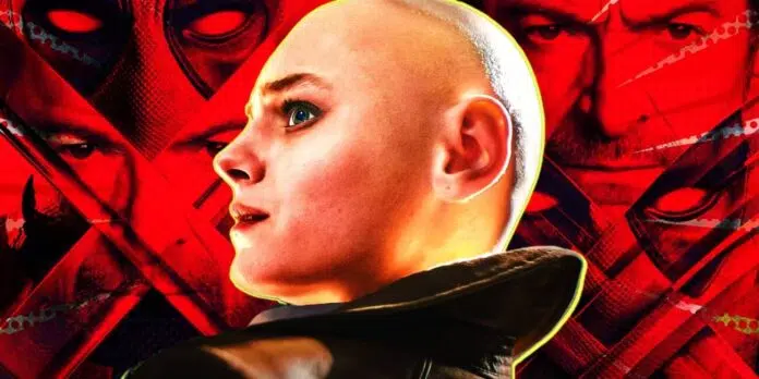 Além dele, o Dogpool aparece na imagem, junto com a vilã Cassandra Nova (Emma Corrin).