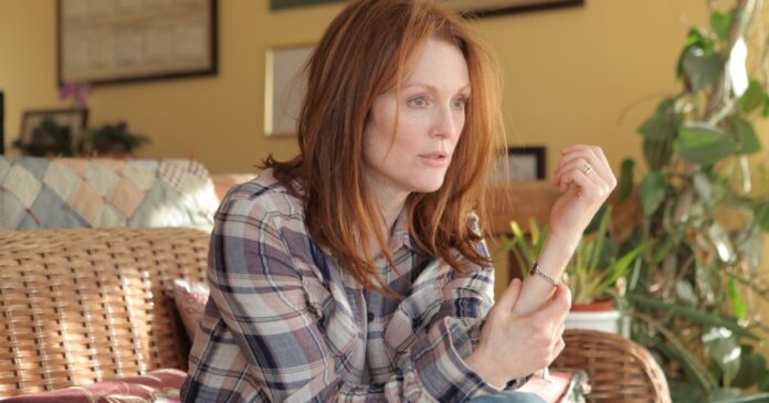 Outro fator que chama a atenção é a belíssima atuação de Moore, conhecida por incontáveis papéis tanto no cinema quanto na televisão. Recém-saída de sua participação na franquia ‘Jogos Vorazes’, a performer, que inclusive conquistou o merecido Oscar de Melhor Atriz por seu irretocável trabalho, entrega-se a uma rendição memorável e dilacerante, chocando os espectadores com uma versatilidade única e invejável. Moore arquiteta com calma o árduo percurso que a protagonista titular irá enfrentar, mergulhando-a em uma angústia desesperadora (como visto na cena em que ela tenta memorizar todas as palavras escritas em um quadro branco) e em um estado de contemplação letárgico frente à condição em que foi posta (e que encontra clímax na sequência em que precisa fazer um importante discurso para seus colegas). A dureza do roteiro é refletida no background de Alice: uma professora de linguística que se vê impotente frente à perda inestimável de tudo o que faz dela