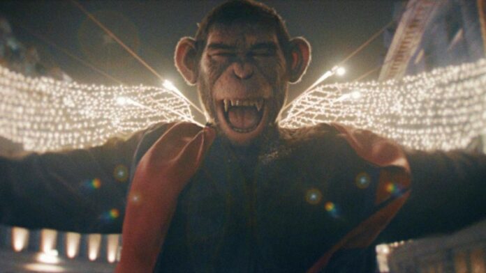 Essa mistura de infância e juventude, trazendo o contraste da vida de um menino solitário e inventivo com a de um jovem astro, consumido pelos exageros da vida de celebridade no Reino Unido, transitando pelas boates LGBT, pelas drogas, pelas bebedeiras e pelas mulheres, acaba criando uma história de ascensão e queda ridiculamente interessante. A própria escolha pelo macaco, que causou um estranhamento em parte do público, se mostra espetacular, já que o CGI é muito bem feito, o que acaba colaborando com toda a excentricidade desse projeto.