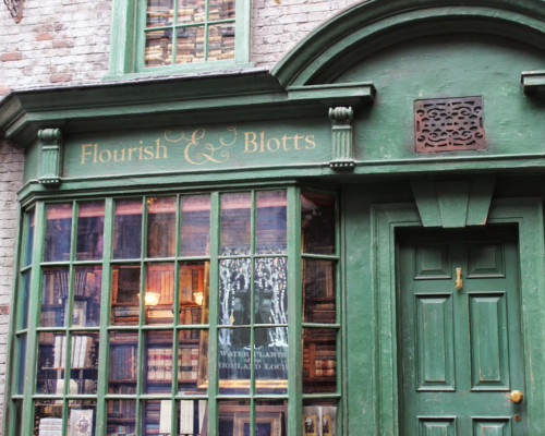 A mais recente foto do projeto revela a construção de um dos cenários mais conhecidos da saga mágica – a livraria Floreios e Borrões, lugar onde a maioria dos alunos de Hogwarts adquire os materiais de estudo, localizada no Beco Diagonal.