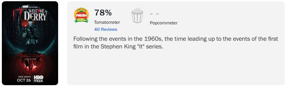Com 40 reviews publicadas até o momento, a série ‘IT: Bem-Vindos a Derry‘ alcançou 78% de aprovação dos críticos no Rotten Tomatoes.