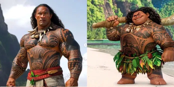 Executivos da Disney estiveram no set do live-action de ‘Moana’ e reveleram o visual do anzol do Maui no filme, que será usado pelo The Rock.