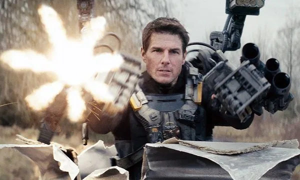 No filme Cruise é Cage (nome sugestivo e antônimo de qualidade), um militar covarde. A escolha pela característica é interessante e serve para desmistificar a figura do ator, sempre atrelada a do herói de ação. Esse momento inicial, com o protagonista tentando escorregar de todas as formas de suas obrigações no campo de batalha, rende o melhor esforço da obra e ficamos desejando mais. O filme nos apresenta um futuro caótico em guerra, no qual os humanos são forçados a enfrentarem uma raça alienígena testando sua capacidade ao limite.