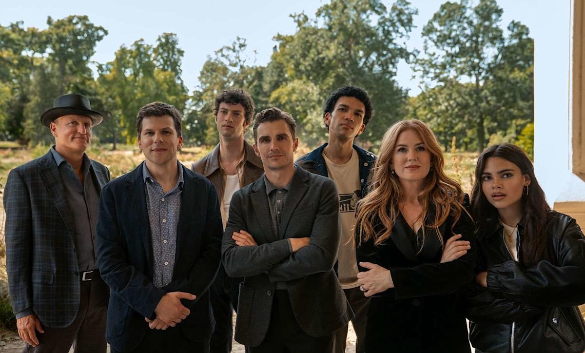 Foi imensamente reportado que o mês de outubro amargou o pior fracasso nas bilheterias norte-americanas nos últimos 30 anos. Ou seja, desde a década de 90 os números não eram tão baixos. Isso, é claro, reflete no Brasil e no mundo. Mas novembro chega disposto a mudar isso, com potenciais blockbusters que prometem chamar o público novamente às salas de cinema. Depois de ‘Predador: Terras Selvagens‘, temos este terceiro ‘Truque de Mestre’, parte de uma franquia de mágicos golpistas muito querida dos fãs, que não dava as caras nas telonas em dez anos. Todo o elenco está de volta, o que inclui Jesse Eisenberg, Morgan Freeman, Mark Ruffalo, Woody Harrelson, Dave Franco, o retorno de Isla Fisher ao elenco, e as adições de Rosamund Pike, Justice Smith e Dominic Sessa.