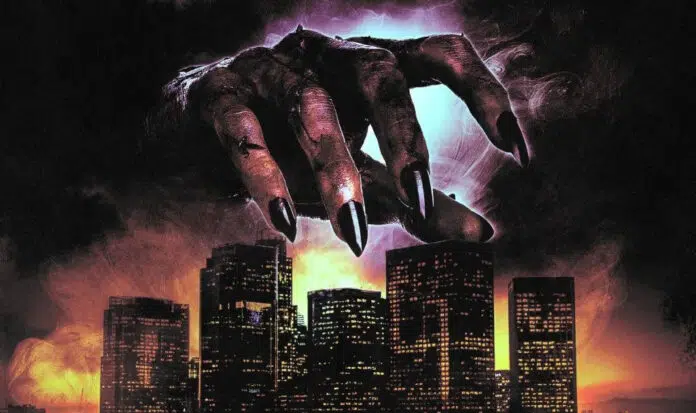 A arte, criada por Creepy Duck Design, destaca uma força maligna espreitando a cidade grande.