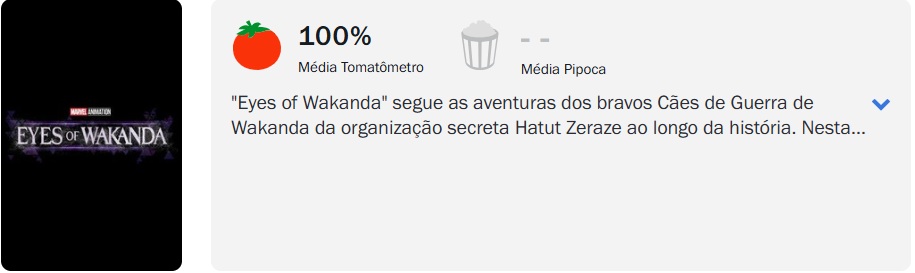 ‘Olhos de Wakanda’, nova animação da Marvel derivada de ‘Pantera Negra’, já está disponível no Disney+. No Rotten Tomatoes, a produção estreou com uma impressionante aprovação de 100% por parte da crítica, baseada em 7 análises.