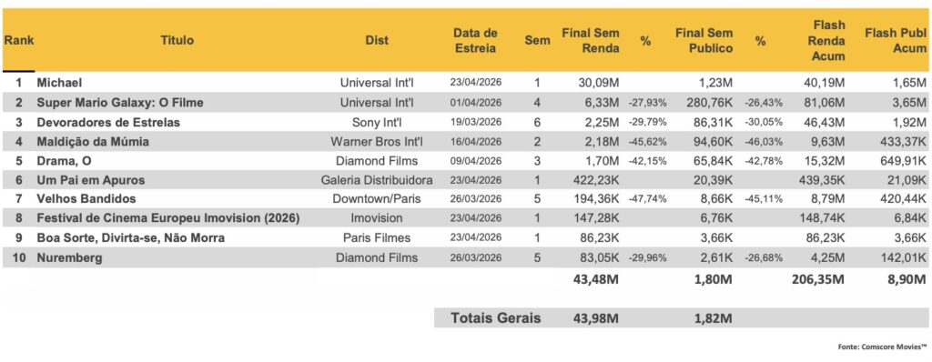 Para comparação, ‘Super Mario Galaxy – O Filme‘ levou 1,16 milhão de pessoas aos cinemas em sua estreia e arrecadou R$ 27,3 milhões.