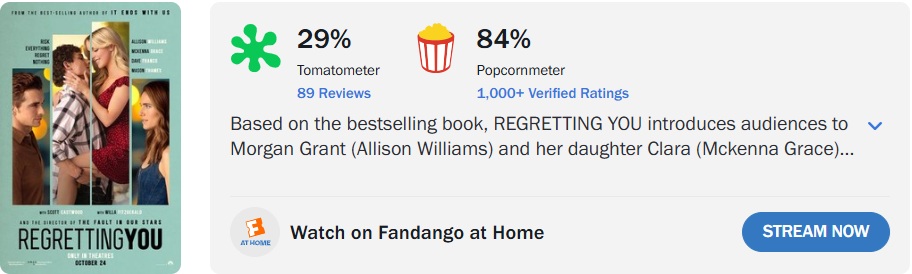 ‘Se Não Fosse Você’, longa que adapta o livro de Colleen Hoover e é estrelado por Mckenna Grace (‘The Handmaid’s Tale’) e Mason Thames (‘O Telefone Preto’), conquistou 29% de aprovação da crítica no Rotten Tomatoes, com base em 89 avaliações. Já entre o público, o filme registra 84% de aprovação.