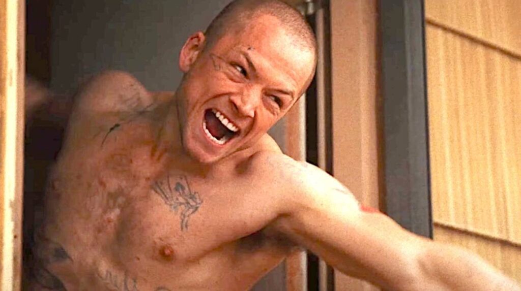 A transformação física do ator para viver Nate também impressiona: Egerton abandonou o visual de galã, raspou a cabeça, cobriu-se de tatuagens e ganhou muita massa muscular.