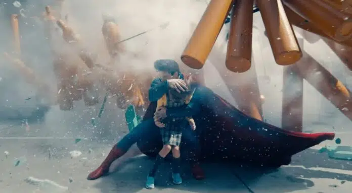 David Corenswet estrela como Clark Kent/Superman.