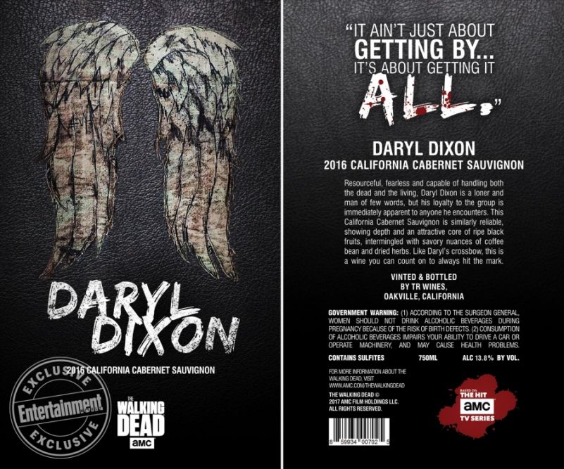 Os vinhos inspirados em três dos personagens mais populares da série: Rick Grimes (vivido por Andrew Lincoln), Daryl Dixon (Norman Reedus) e Negan (Jeffrey Dean Morgan).