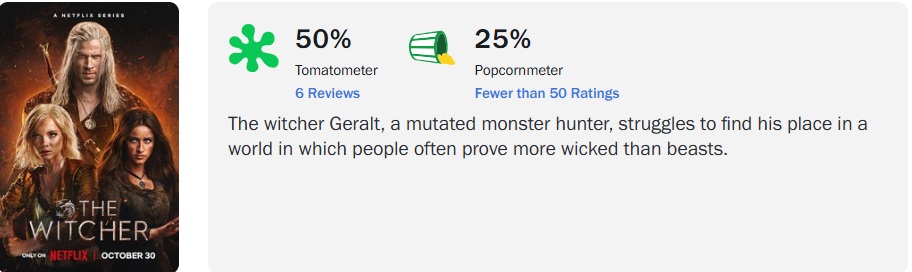 A 4ª temporada de ‘The Witcher’ já está disponível na Netflix, marcando a estreia de Liam Hemsworth como o bruxo, substituindo Henry Cavill no papel. No Rotten Tomatoes, a nova temporada alcançou 50% de aprovação da crítica, com base em 6 avaliações.