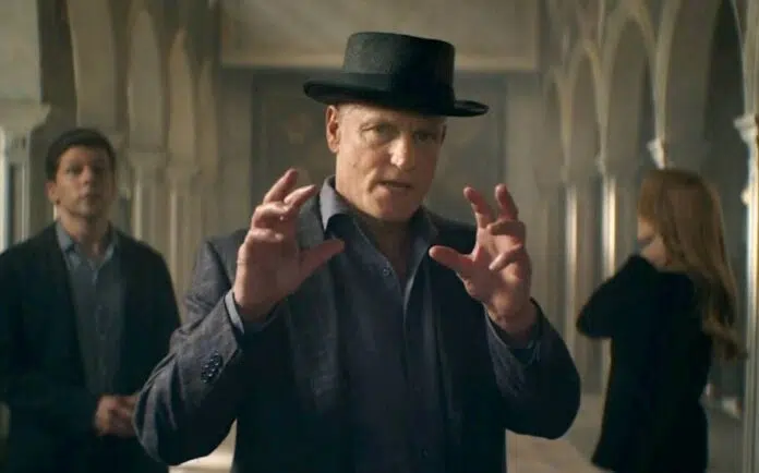 Os Quatro Cavaleiros, interpretados por Jesse Eisenberg, Woody Harrelson, Dave Franco e Isla Fisher, estão de volta com uma nova geração de ilusionistas, no cartaz nacional de ‘Truque de Mestre – O 3º Ato‘.