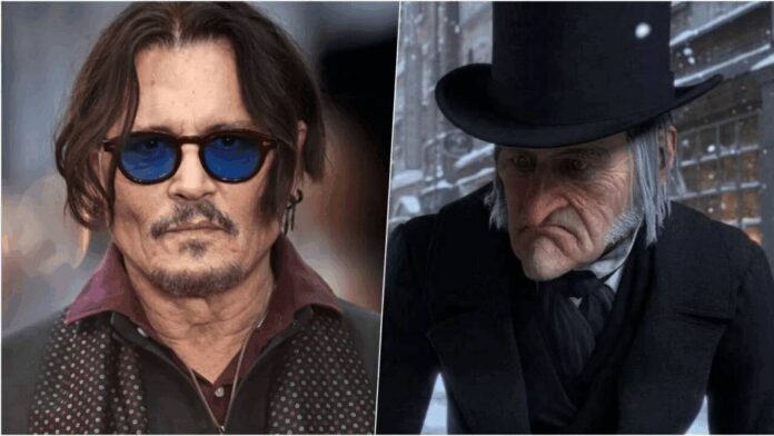 Depp assume o papel do icônico e ranzinza Ebenezer Scrooge.