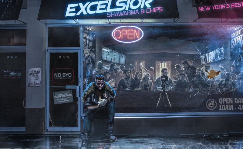 E para não deixar ninguém de fora, o artista BossLogic acrescentou o personagem M’Baku, que embora esteja do lado de fora, garantiu um pequeno espaço no retrato de família.