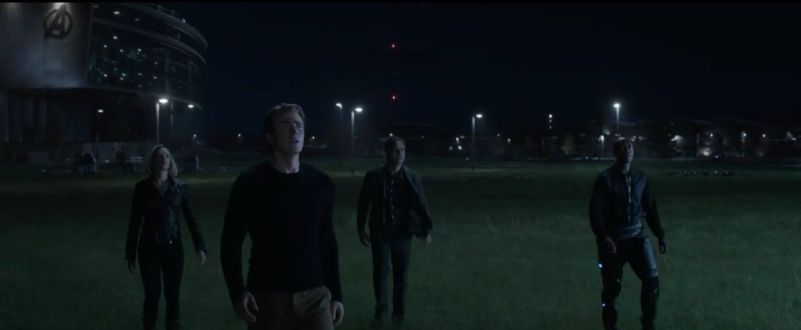 Os Vingadores aparecem na frente da sede. Viúva Negra, Capitão, Bruce e Rhodes olhando para o alto. Quem vem vindo? Isso indica que algo incomum está ali em cima. Seria a Capitã Marvel? O retorno de Tony Stark? Talvez até mesmo uma volta de Thanos? Há também um espaço vazio MUITO suspeito entre Bruce e Rhodes. E como a Marvel tem o costume de apagar personagens dos trailers, pode ser que talvez a Capitã Marvel já até esteja ali.