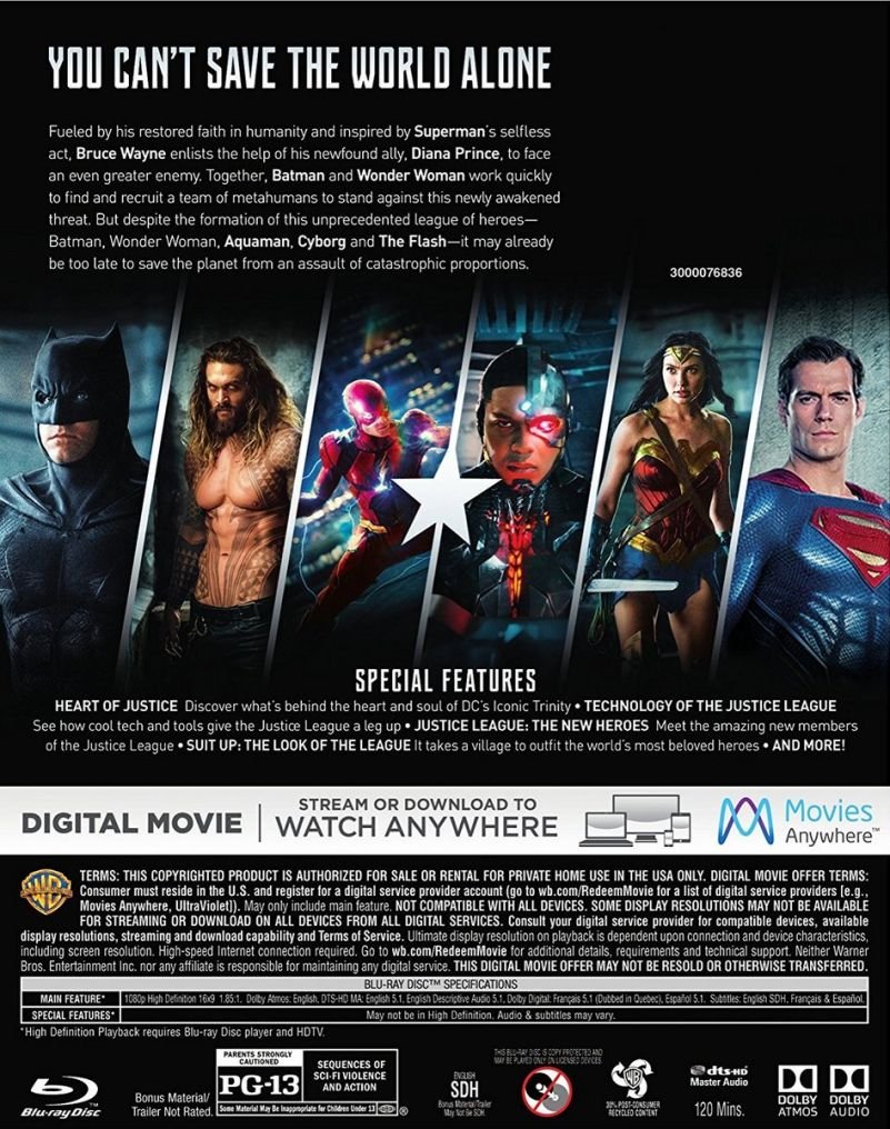 Agora, a Warner Bros. colocou muito mais cor em seus heróis na capa do Blu-ray do filme, tirando o tom sombrio característico de Zack Snyder.